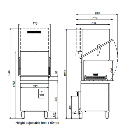 The Digitech Pass-Through Dishwasher is designed for maximum ease of use, powerful cleaning performance, and energy efficiency. Its innovative hood design and anti-friction guides allow for smooth, effortless lifting, which reduces operator fatigue and boosts productivity and it accommodates GN 1/1 containers and large dishware, making it ideal for busy commercial kitchens. Press-moulded tanks and double filtering ensure a hygienic wash chamber free from internal pipes and sharp corners. The machine features ergonomic controls, easy-access maintenance, and versatile installation options to suit straight-line or corner setups.
